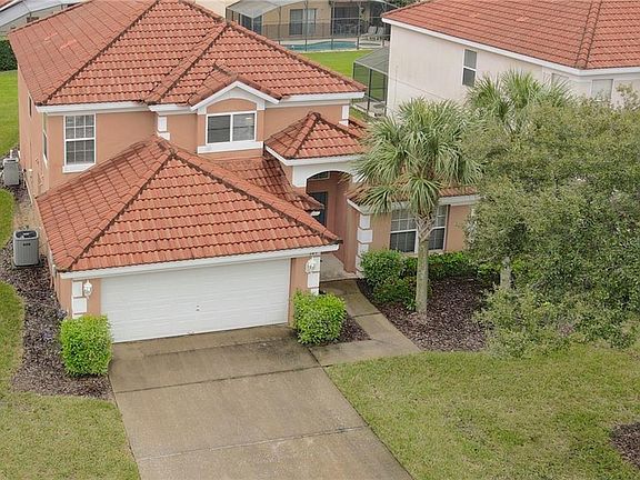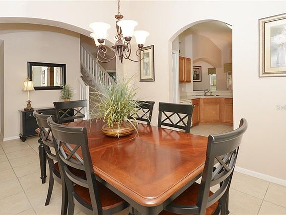 You will be knocked off your feet with this gorgeous home in the desirable gated community of Solana. The amenities include a clubhouse with fitness center, sitting area, pool table as well as a community pool with cabanas, playground, volleyball and put-put golf. There is also free wireless internet inside the clubhouse. Your home is steps away from this outdoor paradise and comes fully furnished and turn-key! Your home owners dues include cable and internet and as of January 2021, free phone service! As you enter, you are greeted by a large foyer looking into your spacious great room. A formal dining room affords you that special area to host your larger dinner parties. But, you also have a cozy eat- in area of the kitchen where there are lots of cabinets, counter space and a pantry for even more storage. Your great room has fabulous high ceilings and an abundance of natural light. The private screened-in pool is there for you to take a dip while you enjoy the sunshine during the warm Florida weather. There are two bedrooms on the first floor, including your master with ensuite bathroom. The second floor has three more bedrooms and two bathrooms! And one more fun fact...you have an additional entertainment area with a pool table and ping pong ready to challenge those competitive visitors. But if that is not to your liking, remove the tables and return it to your spacious two-car garage. Whether you are looking to make this your new primary home or if you are buying it for short- term rental income, you will not be disappointed. You won't need to spend any time on lawn care, as it's all a part of your homeowner dues! Solana is located close to all the Disney parks, restaurants, shopping and an easy drive to Tampa. This property is a MUST SEE!