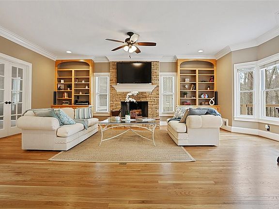 Walk to Chattahoochee River! Nature retreat only min from Ext 7 GA400. Stately 4BR/3.5BA+finished bsmt home on .76 acre cul-de-sac lot in sought after Martins Landing. Fireside fam room w/built-in cabinets opens to chef's kitchen. Separate living room/office, dining room. Master suite w/sitt area & spa-like bath. 2 guest BDRS sharing J&J bath. 3d guest BD is en suite. Serene nature views from multiple bay windows & large deck. Amenities: 55 acre Martin Lake/15 tennis courts/3 pools/nature preserve/2.5 ml walking trail/river access. New roof/paint/carpet/deck/fixtures.