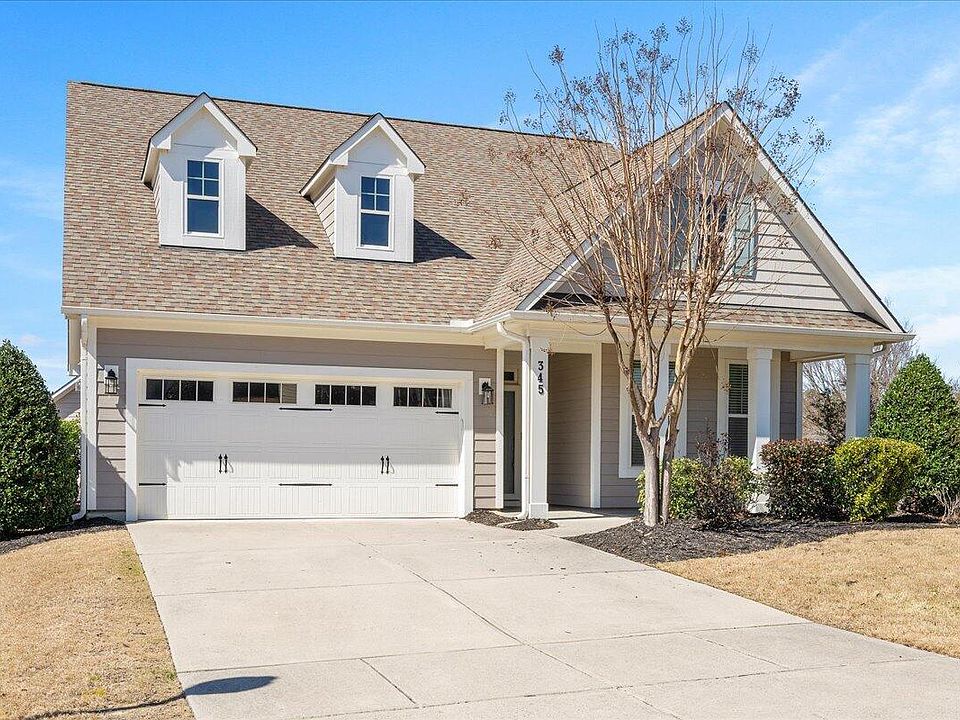 Welcome to 345 Springtime Fields Lane, a stunning home in the sought-after Traditions subdivision of Wake Forest. This beautifully maintained 3-bedroom, 3 bathroom home offers 2025 square feet of thoughtfully designed living space and has been completely repainted on the inside (2/2025). From the charming front porch to the open-concept floor plan, this home is perfect for modern living. The spacious kitchen features granite countertops, a large center island, stainless steel appliances, a gas cooktop, ideal for entertaining. The hard wood floors continue from the kitchen into the dining area and living room. Gas logs provide heat in the winter for snuggling up with a good book. The windows of this home, combined with the placement on the lot, provide tons of natural light, especially in the afternoons. Step outside through the sliding glass doors to the concrete patio where you can enjoy amazing sunset views. The primary suite is located at the back of the home. It includes a trey ceiling that makes the room feel bigger than its measurements. A large walk-in closet has plenty of room for clothing, shoes and accessories. In the bathroom, you will find dual vanities, a large mirror, tons of cabinet and drawer space, a separate garden tub and a stand-up shower. In the water closet, there is a linen closet also. The second bedroom on the first floor also has a full bath that doubles as a guest bath. The closet has plenty of space for storage of hanging clothes, or space for a chest of drawers inside. Two bedrooms and two full baths on the first floor make this a great home for multi-generational living. On the second floor, you will find a loft area that could be a play area, theater area or office space. The third bedroom has a closet and massive floored attic space with shelving for storage. Adjacent to the 3rd bedroom and loft is another full bath. This is a great space for teenagers to host friends or for those memorable sleepovers with younger friends. The two-car garage has permanent shelving installed and can be removed if needed. There is a brand-new water heater (installed 2/2025) and enough parking for 2 cars in the garage and up to 4 more cars on the driveway. Enjoy all that Traditions has to offer, including the community pool, clubhouse, trails, and playgrounds. Conveniently located near downtown Wake Forest, shopping, dining, and major highways, this home truly has it all.