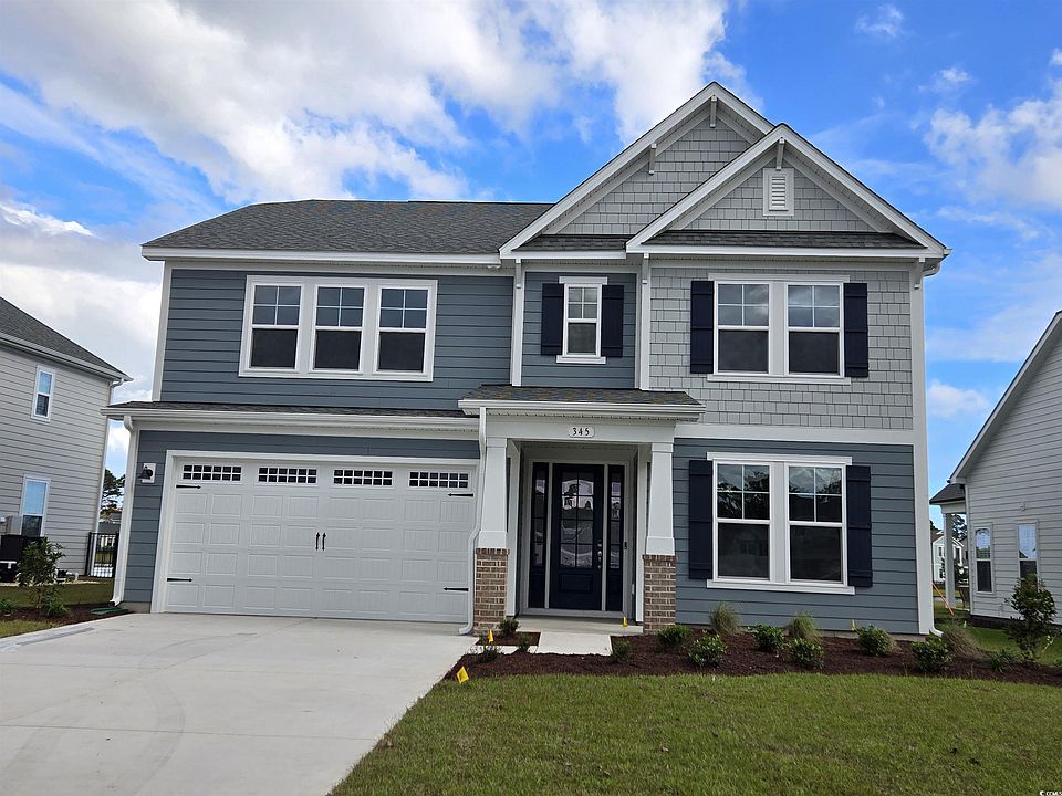 The Mangrove is the perfect balance between outdoor living space. At 3,349 heated square feet, this model offers five bedrooms, three bathrooms, second floor loft and laundry room. Step in from the Mangrove's covered front porch to find a formal dining room, an open kitchen with a breakfast area, butlers pantry and great room area. Breeze through sliding glass doors onto a covered porch on a waterfront lot, ideal for warm summer evenings or afternoon get-togethers. You will enjoy the gourmet kitchen with a gas cook top and double wall ovens. Whether you’re looking for an abundance of counter space, added seating, or a more intimate gathering area, this model’s options will serve as the solution. Welcome to Waterbridge, an established gated community in the sought-after Carolina Forest area of Myrtle Beach! If you are looking for a stunning location to build a new home that is also rich in amenities for you and your family to enjoy, look no further. Living in Waterbridge means living in a location that brings nature to your doorstep. With treelined and water view homesites, you are bound to find the perfect location to build your dream home. The overall coastal cottage-style homes show curb appeal at every angle and the approximately 120 acres of preserved land and 80 acres of lakes help make this the charming community many have come to love. There is no doubt that the bread and butter of Waterbridge are the award-winning, resort-style amenities featured there. Finding things to do just outside your front door will not be hard here. Grab a friend and go enjoy tennis, pickleball, or basketball. Journey out on Palmetto Lake via a boat launch where you can partake in all of the exciting activities lake life has to offer! Gatherings have never been better than at the beautifully crafted clubhouse with a refreshment center and catering-style kitchen. Break a sweat at the 24-hour fitness center, complete with cardio and weight training options. Waterbridge is also home to the largest residential swimming pool in South Carolina which includes Olympic-size swimming lanes, a landscaped island, jetted spa, and a swim-up refreshment center! Pack a bag because you will want to spend the whole day there! Outside of the community, the Myrtle Beach area has so much to offer! From golf to beautiful sprawling beaches with some delicious restaurants nearby, it will not be hard to find things to keep you busy! Nearby malls and outlets are good for some much-needed retail therapy and there is always a plethora of live entertainment and festivals to bring people together. Highly ranked schools in the Carolina Forest area and the close proximity to medical offices add the perfect touch of convenience. Don't miss the opportunity to call this unique community your home! Photos shown are of a similar house.