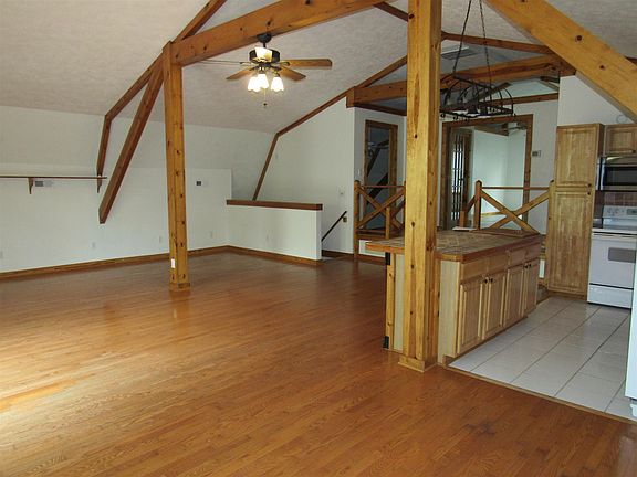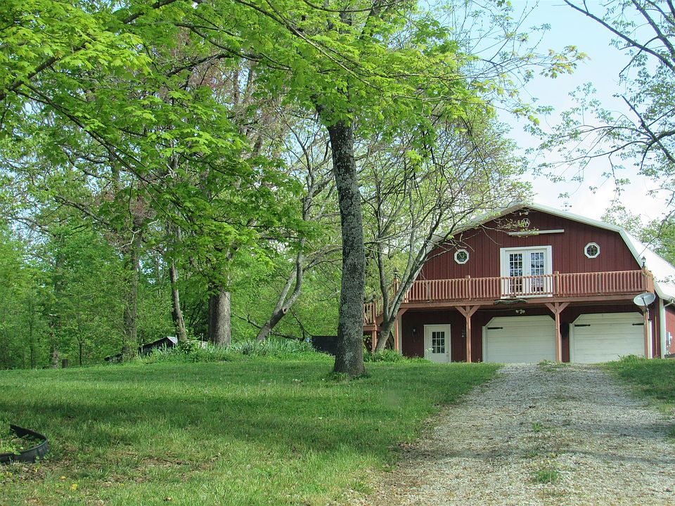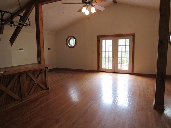 Unique Property. Morton bldg with Living Qtrs Upstairs. 2 bedroom, 2 bath. Open Floor Plan. Hardwood and tile.Fully furnished kitchen. Great room features new patio doors that lead to front deck. 4 Horse stall, 2 car garage and entry with lots of storage on main floor. Tobacco barn & tool shed. Property is fenced and some cross fencing. 9.7 acre Beautiful private setting only minutes from town.