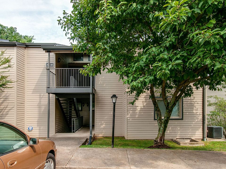 Enjoy TREETOP living in the heart of Green Hills* Stylishly updated! Newly tiled entry foyer* Freshly painted interior* NEW BATHROOM* Walk-in closet with custom finishes* GRANITE kitchen countertops + Stainless appliances* Clothes washer & dryer included* Easy access to the front door~ no steps* Peaceful, private deck* Community POOL, tennis & clubhouse* New HVAC~ 2019*