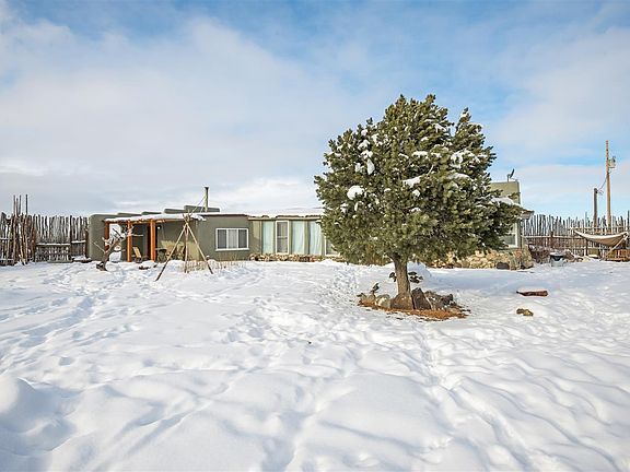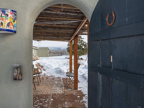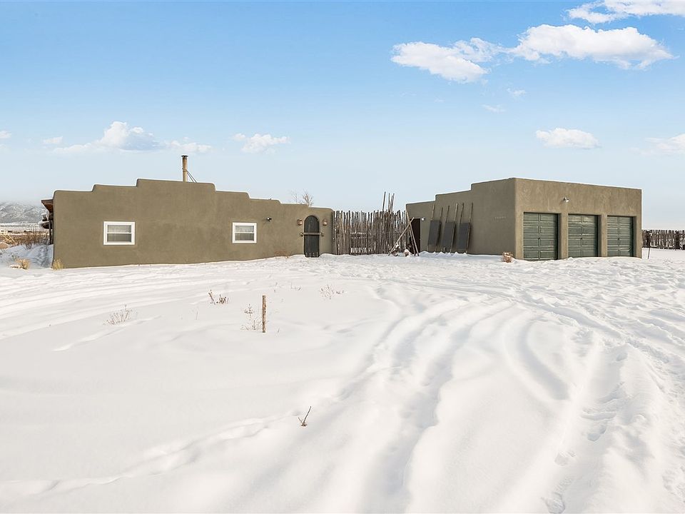 This newly remodeled hybrid Earthship Ranch property includes a spacious two-bedroom home, guest house, artist studio and dedicated fenced pens for your horses, goats, sheep and chickens. Centrally located between Taos and the Colorado border, this spectacular five-acre property enjoys panoramic views of Ute Mountain and Sunshine Valley. The property, which is enclosed by an expansive latilla fence line, is a short drive to Red River Ski Resort, the Rio Grande del Norte National Monument and the Taos Ski Valley. Enjoy living in the comfort and beauty of the main house while renting out the casita driveway for additional income.