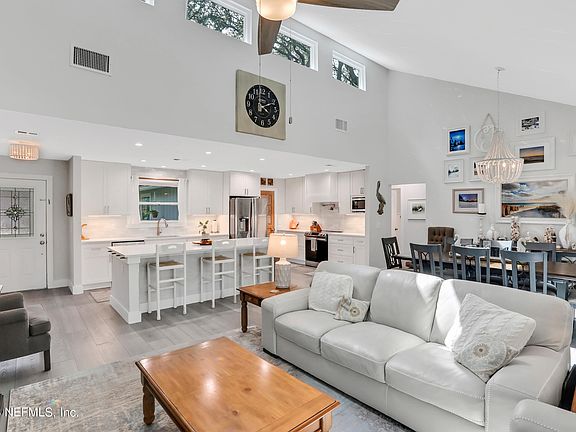 This beautifully updated home sits on a large lot via a canopied street only 4 miles from the beach. From the oversized kitchen island, spacious butler's pantry to the stylish tilework... no detail has been spared in this must see home. New windows (2021) fill the great room with tons of light. New roof and electrical panel (2021) and new plumbing (2021). On septic (last pumped in Jan), NO HOA or CDD. Large bedrooms, large fenced yard with hot and cold outdoor shower, two car garage and large driveway for easy parking. The Pablo Point neighborhood is 4 miles from the Beaches Town Center with plenty of dining and shopping and of course, the beach!