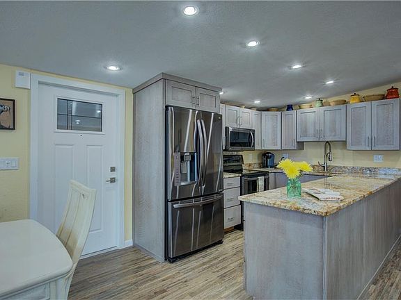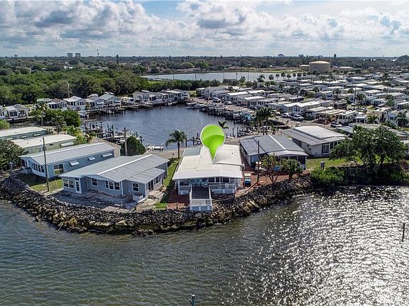 TRULY A "ONE OF A KIND" Manufactured home in a 55+ community with many amenities. A co-op share is included. It has a boat dock with a lift right outside the front door with a minimum of 10 minute access to the gulf. This home has been completely remodeled from the flooring, wall studs to the roof!! Quality furnishings are included with a few seller selections excluded. The dream is over to own a place in Florida where you can fish off of your very own deck. You will think you are on the bow of a ship looking out into the bay on this newly designed Trek deck complete with shaded canopy. The trendy galley kitchen has modern cabinets and an exotic granite. We call this "cooking with a view" as you watch the boats traveling about in the Terra Ceia Bay. Both bathrooms, again... completely remodeled, feature granite tile on the shower walls and floors. The master bedroom is very spacious and large enough to suggest an additional reading/television area. This home has floor to ceiling hurricane glass on the bay side and they has been tinted creating a soft ambiance all day long. All other windows were replaced in 2018. The second bedroom is small but efficient and offers plenty of privacy as well as a view of the bay. Also included is a separate workshop with additional storage.This home would make a wonderful AIRBNB or seasonal rental. It will be some time before a MFG home like this becomes available again so just go for it and get that dream home/investment on the water!!