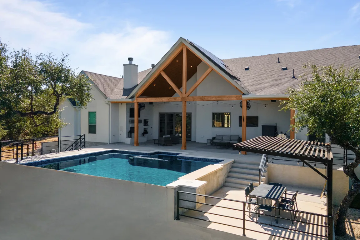Heated pool and spaOutdoor kitchenExpansive windowsOpen light-filled floor planPanoramic viewsInviting fireplacesSpacious laundry room