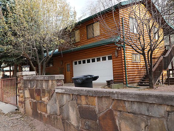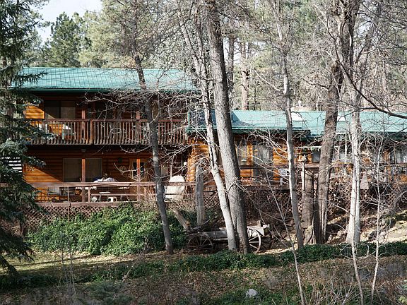 Your Creek home in Christopher Creek is now available. On the year-round Christopher Creek, large .55 acre lot goes from house to other side of creek and includes the creek. The property from the middle of the creek to Columbine could be sold separately, approximately .32 acre for $95,000. The price of the home on .23 acre would be reduced to $450,000. Log-sided home with custom sandstone block fence wall surrounding part of the property. Two entries, one to a carport and one to the garage. Metal roof with skylights. Cherry & Apple trees with sprinkler system. Creek has been reinforced with retainer baskets. New trex decks. 4 bedrooms, 3 baths, knotty pine interior, sandstone fireplace. Large kitchen with great views of the creek and meadow.