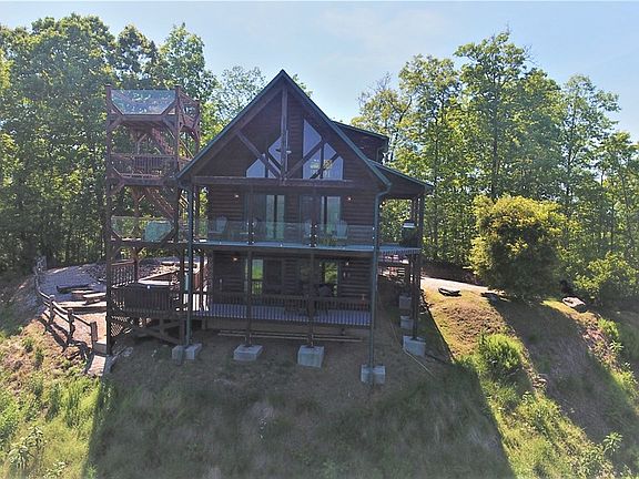 BREATH TAKING VIEWS!! Great rental cabin with take your breath away panoramic views. Paved access to the top of the mountain. End of the road privacy. Three level cabin with views from each level. Main level has glass panels for banisters so your view isn't obstructed. Trex decking on main level. Open living room/dining and kitchen. Gas log fireplace in the living room. New kitchen with custom barnwood cabins with corrugated metal on the back side of the bar. Soap Stone counter tops. Bedroom and bath on main. Washer/dryer on main. Upstairs is a loft with full bath. Seller is usually upstairs area for entertainment area. Master in the basement with gas log fireplace, sitting area and full bath. Sliding doors to deck that houses a hot tub. Off the main deck there is an observation tower built. So if you think the view is amazing from the main level just go up a few more levels! Small deck on the side of the house along with a outdoor firepit area. Good amount of parking area. SLyeave internet. COMES FULLY FURNISHED except a few personal items/wall hangings. Successful vacation rental.