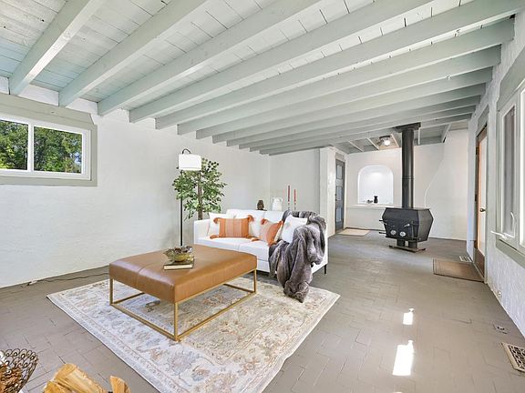 Looking for something with soul, sunshine, and just a little bit of swagger? Welcome to this adobe charmer tucked away on a quiet court in the coveted northern downtown corridor! This spot is perfectly placed - close to 1st Street for quick access to all the action, yet secluded enough to feel like your own private space. From the curb, the classic adobe façade greets you with timeless southwestern charm, shaded by mature trees. Step inside and - bam! - you’re greeted by a sprawling bonus/family room with epoxied brick floors, rustic beams, and not one but two wood-burning beauties (a stove and a fireplace!) ready for cozy nights in. The living room takes things up a notch with its kiva-style fireplace, natural light pouring in, and that bright vibe we all crave. Need an office, studio, or maybe a future guest room? There’s a flexible space right off the living room just waiting to meet your vision. When it’s time to gather, the formal dining space shines with a skylight and track lighting, while the kitchen keeps it cool with exposed brick, wood cabinetry, and a funky retro flair you won’t find anywhere else. For casual meals, the second dining nook - with its wood accents, pantry, and easy patio access - has you covered. Head downstairs for even more room to spread out: think playroom, gym, or the ultimate hangout spot. Add in a utility room and you’ve got functionality and fun. Back upstairs, the primary suite brings in that adobe warmth with exposed wood ceilings, generous windows, a walk-in closet, and easy access to a full bath. An additional bedroom offers great storage and versatility. Out back, life slows down under the massive shade trees. The fenced yard and brick patio are perfect for BBQs, garden dreams, or just lounging with a cold drink. And don’t miss the oversized two-car garage with bonus loft space - hello, ADU potential! Recent upgrades? Oh yeah: as of August there's a new furnace, water heater, A/C, fresh carpet, and more. This isn’t just a structure - it’s a personality-packed home ready for its next chapter. Will it be yours?