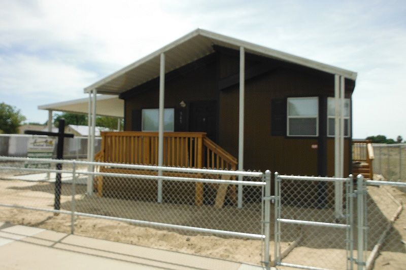 3 Bedroom 2 bath modular home with over 1,300 SQ Ft. of living space. Kitchen with a gas range, dishwasher, disposal and a center island. Living room with a ceiling fan, laminate floors and vaulted ceilings. Guest bathroom with shower over tub. Spacious master bedroom with ceiling fan. Master bathroom with a shower over tub combo. Inside laundry room. Central heat and air. Property is fenced and has a large covered patio with landscaped front and backyards. Landscape service included. Tuff Shed Included. AVAILABLE OCTOBER 25TH