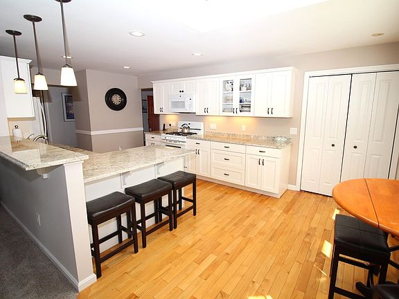 3000+ square feet of living area awaits you in this exciting open floor plan one level home with finished walk out basement. Beautifully updated Kitchen with generous cabinetry and granite tops. Many other updates include baths and flooring. Large living room with gas fireplace flanked by custom shelving. The 3 season sunroom streams abundant natural light and is a great place to watch beautiful sunsets. The full walkout basement has large windows and a huge familyroom as well as a full bath, pleasant bedroom, and den. Vaulted ceilings, window awnings, central air, central vac, and an unfished storage area in the basement with a set tub are a few other features you'll enjoy. Come take a look, you won't be disappointed!