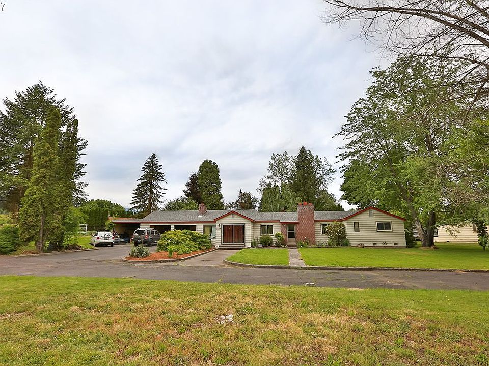 A large, comfortable, 0.64 ac yard surrounds this 1940s ranch home. The home is large & rambling, with a central kitchen, a retro feel, big family and living rooms. 2 fireplaces, plus a gas stove. Great parking/storage in the attached carports. Bring your tools and ideas. TLC will be required, but the home and yard have amazing potential.