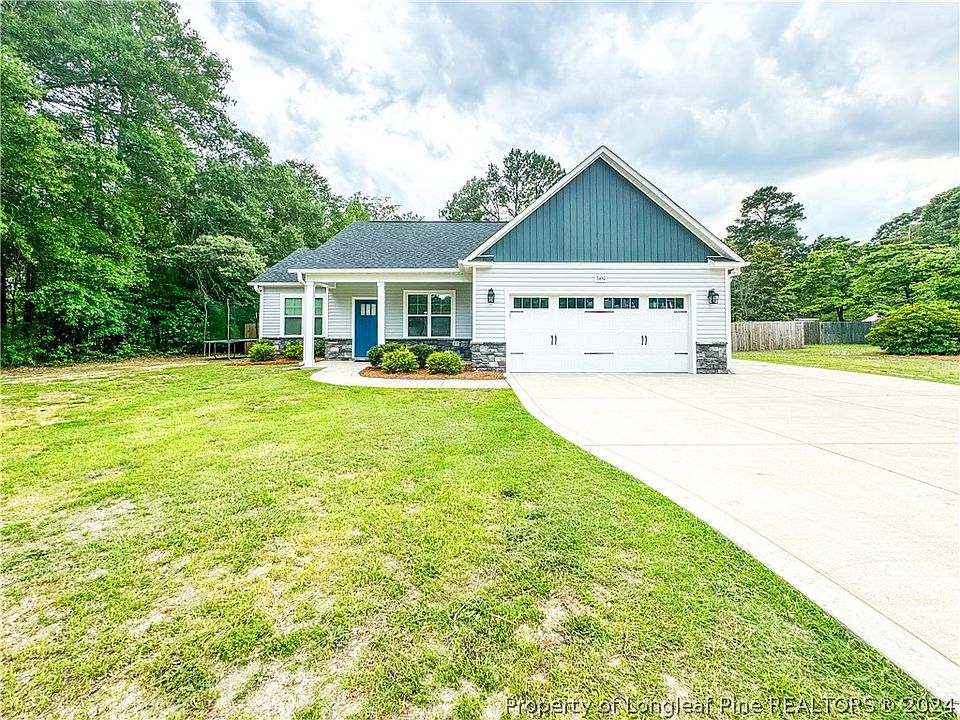 Crafted in 2022, this beautiful ranch-style home features a spacious, split floor plan with 3 bedrooms and 2 bathrooms. The primary suite offers privacy with dual vanities, a stand-alone shower, a soaker tub, and a large walk-in closet. Two guest bedrooms and a full bathroom are located on the opposite side. The kitchen is a chef's dream with a double oven, a center island, and granite countertops throughout the home. Enjoy a formal dining room with wainscoting, high ceilings in the living room and kitchen, and a fully fenced backyard perfect for entertaining. Additionally, the home offers a 2-car garage and an extra parking pad on the side. This home blends comfort and style, ready for you to move in!