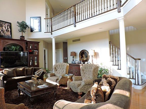 Don't miss this opportunity! Premier living at it's finest! You will be amazed! It begins with a custom brick and stone exterior surround and impressive 1/2 circle concrete drive professionally landscaped. Home features 5 bedrooms (one on the main floor w/private bath) and 4.5 bath baths throughout! 3 car heated garage. Master list of upgrades include: Hardwood floors throughout, marble fireplace, custom built-ins, 2-story living room, 1st floor laundry, stainless steel appliances, wine fridge, granite, exterior built-in gas start fireplace and gas-line for grill, custom patio which overlooks gorgeous pond, his and her professionally installed closets in the master suite, irrigation system, security system, zoned hvac, newly painted and brand new custom window treatments throughout. This home is one-of-a kind and will not disappoint!!!