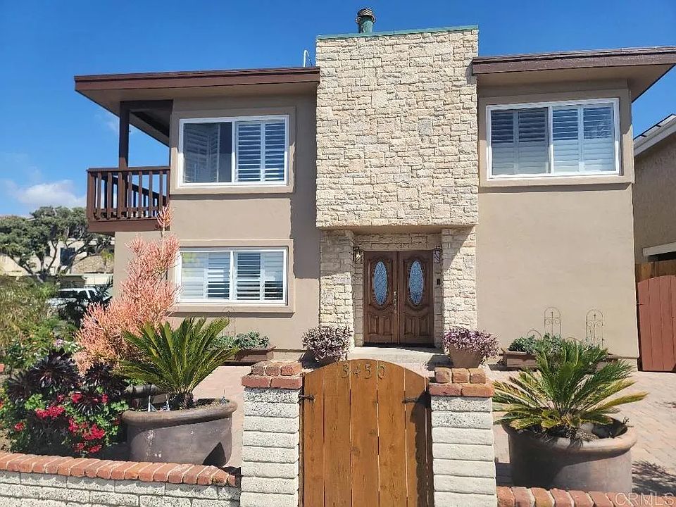 Unobstructed panoramic ocean views await you on the boardwalk in Carlsbad! Relax on the large patio or upstairs balcony and enjoy the endless surf breaks, dolphins playing, views to the pier and breathtaking sunsets! The master bedroom, kitchen and main living area is upstairs with large windows to capture the sparkling Pacific Ocean. The kitchen is updated with granite and SS appliances and new light fixtures in the dining room and stairwell. 2 guest bedrooms, 1 bath and laundry room with washer and dryer are located on the main floor with direct access to the 2-car garage. The home has vinyl windows and fresh interior and exterior paint. Wash off the sand in the outdoor shower after spending a day at the beach. Ideally located within walking distance to the Village offering many restaurants, coffee shops, bars and nightlife, boutiques, a Farmers market on Wednesdays, Yoga on the beach, art shows and so much more! With only 60 steps to the sand, welcome to the beach lifestyle of Southern California!