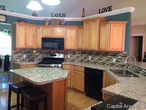This 3 bed/2 bath home features split floor plan with cathedral ceilings. Open kitchen offers maple cabinets, island and breakfast bar and has been NEWLY updated with custom countertops, undermount sink and backsplash. Large master bedroom has Jacuzzi tub, separate shower and walk-in closet. NEW carpet in third bedroom. 100x200 lot with 2 car attached and 1 car detached garages. Concrete patio off living and master. Entire home freshly painted.