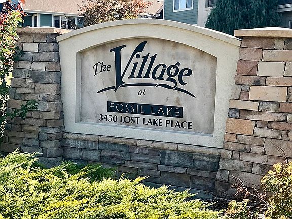 Taking backup offers. Great opportunity to own in the desirable Fossil Lake Ranch neighborhood since it is priced just below market for a quick sale. Enjoy a maintenance free lifestyle in this townhome style condo in The Village @ Fossil Lake! With abundant special features & 2900+ finished sqft this lives like a single family home & offers 4 beds, 4 baths, finished basement & oversized 2 car garage. Spacious eat-in kitchen includes granite, built-in desk area & walk-in pantry. Luxurious master includes 5-piece bath, jetted tub, fireplace, beverage bar w/ fridge, & private balcony. Basement offers rec area, built in cabinets.
