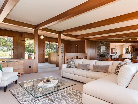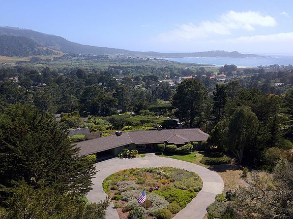 Experience the glistening Pacific Ocean fading into the Carmel Valley River basin while the Santa Lucia Mountain Range melts into Point Lobos State Park. This dynamic scene at Falconridge West is a one-of-a-kind property located at the end of a coveted, Carmel cul-de-sac. This flat 1.48 acres is the 7th largest residential parcel in Carmel, west of Highway 1 and possibly the 2nd largest ocean view property. The Mid Century home boasts 4,092 sqft, 6 bedrooms, 5.5 baths, large main living area, a family, room and a guest suite with its own entrance. The vantage points from this property are mesmerizing with the sun rising from Carmel Valley and over the mountains in the mornings while the evening sunsets over the Pacific Ocean and Point Lobos astound the senses. The amazing mature Oak tree, native plant gardens and lovely fruit trees gives the property depth and local culture while still leaving an abundance of space to do whatever your heart desires on this monumental and flat property!