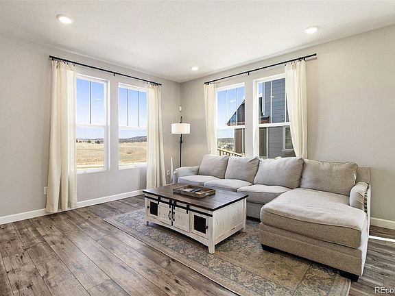 Close to everything!!! This captivating 3-bedroom, 3-bathroom charmer is found in the The Meadows neighborhood, where open space, trails and parks encompass the community. The home is within walking distance of The Meadows Town Center, Castle Rock Middle School and Castle View High School, Paint Brush Park, Taft House Swimming Pool, the community center, and easily drivable to Castle Rock Outlets and Shops, and Downtown Castle Rock. Cross the threshold into a warm welcome that includes hardwoods throughout, an open layout, natural light and stylish fixtures both, and neutral decor with great upgrades throughout. Worthy of a photo-op, the chef's kitchen is gorgeous with premium appliances, quartz counters, beautiful backsplash, and an attractive island layout. The calm primary bedroom includes a walk-in closet, spacious bathroom and a conveniently located laundry room right in the hall! The other two bedrooms are situated outside of the BONUS loft area! The unfinished basement is perfect for future finish basement with tall ceilings and rough in plumbing or great for extra storage space. This home is full of upgrades you will not be disappointed! Attached two-car garage. Exteriors include inviting front patio and a great, low-maintenance backyard with a newly added patio space perfect for outdoor entertaining. Someone's going to be very happy here . . . let it be you!