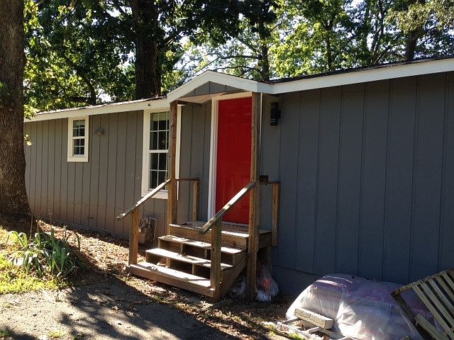 On the lake and move in ready! Clean home with new paint and carpet, hardwood flooring, nice tile baths, and a million dollar view. This home features a split floor plan. Big back deck which spans almost entire back of home and path down to lake. Nice quite community close to everything. When you come into community go all the way down the hill and back up. Home will be directly in front of you when you get to the top of the hill. Please drive slowly and respect neighbors.