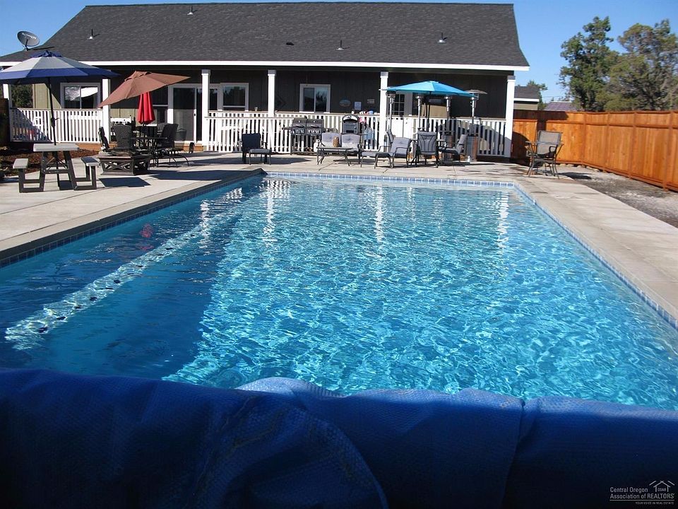 One year old home on almost 5 acres in NE Redmond. Private setting with 3 bedrooms, 3 full bathrooms, 2 master suites, vaulted ceilings, open floor plan, formal dining area. Hardwood floors through out. Granite counter tops, stainless appliances. Jetted tub in master. Covered porches front and back.Detached heated studio, almost 1500 sq ft vaulted insulated and finished garage/shop. 20x46 inground pool with solar system and gas heater, Private well, sprinkler system. Lots of room for horses. MUCH more!