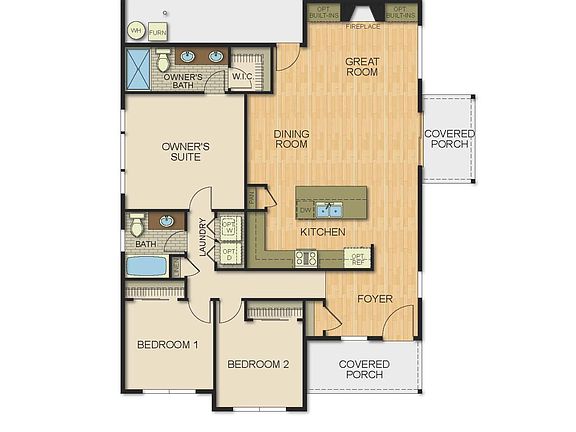 - Pantry, Shower/Tub Combo, Double Vanity, Linen Closet, Walk-In Closet(s), Enclosed Toilet(s), Kitchen Island, Vaulted Ceiling(s), Open Floorplan, Fiberglass Stall Shower