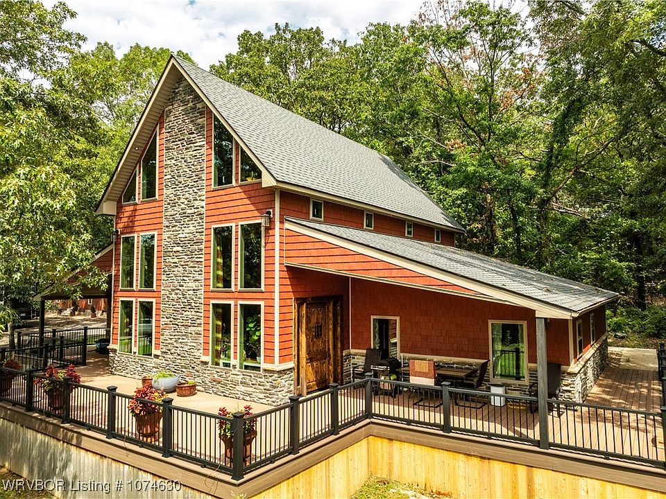 Let's talk Rustic Charm. This custom-built home nestled perfectly on +/- 22.46 wooded acres is absolutely enchanting! Start the day or end the day in the hot tub with coffee or mimosa on the deck that wraps around most of the home surrounded by the beautiful scenery view and wildlife. This property is a haven for relaxation and enjoyment. The living room has soaring 30 ft high cathedral ceiling that greets you with breathtaking, picturesque floor-to-ceiling windows that wrap around the gorgeous propane fireplace and the stunning Chandelier that will still the show. The stylish kitchen has a rustic feel with granite counter tops, slow close custom cabinets, perfect size kitchen island great for guest and dinning. Beautiful Commerical vinyl flooring that compliments the whole home. Two oversized Rustic doors in the living room that both go out onto the cover deck. Split floor layout. The welcoming main bedroom has tray ceilings, many windows for natural light, large bathroom with lots of cabinet space, granite counter tops, hug closet and tiled walk-in shower. Second bedroom has its own full beautiful bathroom as well with a tile walk-in shower. Need more room? A portable building outside that can be used for just about anything, craft room, game room, gym or even living quarters. Has mini split heat and air. We can't forget about the 30x60 metal shop. Two overhead garage doors. Shop is insulated and heated by propane. With all the nature, space and privacy would be perfect for family get togethers, walking trails, 4-wheeler trails, hunting and more. Explore the little creek that runs on the property too. Asphalt drive way from road to the home. This home is hooked up to well water with pressure tank and a really nice drinking water system. Public water at the main street.