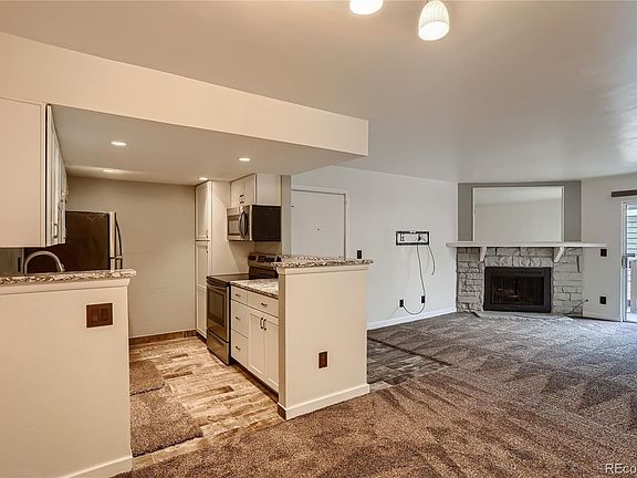 This spacious and fully remodeled home has it all. Large living room with fireplace, stainless steel appliances, granite countertops, new paint and carpet throughout, tile flooring, lots of natural light, covered patio, sliding glass door, brushed nickel fixtures and hardware, Nest smart thermostat, keypad entry, washer/dryer included, and a primary bedroom ensuite bathroom with a walk-in-closet. This quiet community is centrally located with easy access to I-225, Parker Road, the Nine Mile RTD Station, and tons of great amenities nearby, including Dry Dock Brewing, Tacos El Metate, Mojo Coffee, and Pearl of Siam, among others. Exclusive resident amenities include a clubhouse and community pool. This lock and leave condo is ready to move in and call home, come see it before it's gone!