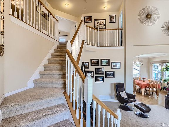 This spacious home on a quiet street is beautifully upgraded! From the moment you pull up the driveway, there is just something about the perfectly curated exterior that makes you want to see more. The bright living room with high ceilings is the first to welcome you into your new home, with sunlight bouncing through the tall windows. A formal dining area with hardwood floors is perfect to entertain. Then you find yourself in the kitchen, and your jaw drops: The gorgeous granite countertops, stainless steel appliances and the nice backsplash are a gourmet cook's dream! The inviting family room has a cozy fireplace and access to the deck. The deck and house will be repainted. With an updated bathroom and large laundry, the main floor has won you over! Then, you walk up the stairs to the second level where four great sized rooms with tons of natural light and ceiling fans greet you. Onto the primary bedroom suite, with vaulted ceiling and access to a private balcony. It also has a large walk - in closet and en-suite 5-pc bath. The cherry on top is the fully finished walk-out basement- an ideal hang - out zone for playing and it also offers plenty of storage space and a nice bathroom. Outside you find the perfect backyard - well sized and tree lined with conrete patio to enjoy the great Colorado outdoors. A hidden shed houses all your tools. The oversized 3- car garage has an extended bay and there is a 4th driveway slab.