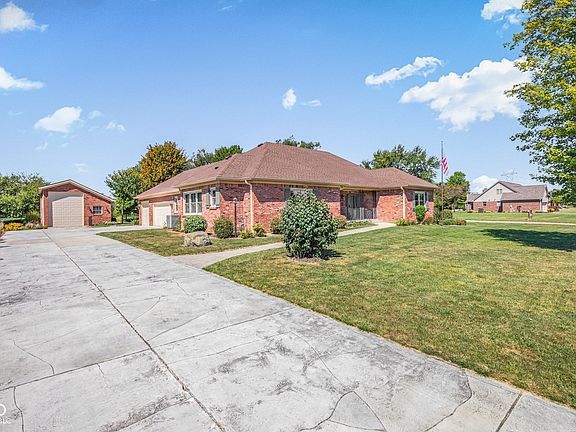 They don't make them like this anymore! This all-brick ranch offers timeless quality with modern updates. Featuring hardwood floors throughout, 4 spacious bedrooms, and nearly an acre of land that backs up to open fields, this home combines comfort and privacy. Enjoy year-round views from the beautiful all-season room, relax on the maintenance-free deck, or unwind under the gazebo. The backyard feels like a private park, complete with perennials and flowering plants-your own personal oasis. A versatile heated and cooled workshop can serve as a woodworking space, home office, studio, or gym. The oversized garage door is perfect for RVs or campers, and the 3-car garage provides ample parking and storage. Major updates include: New HVAC (2024), New roof (2021), Whole-house generator (2025) Located in the highly sought-after New Palestine School District, this home reflects deep pride of ownership and is truly move-in ready. Must see-this one won't last long!