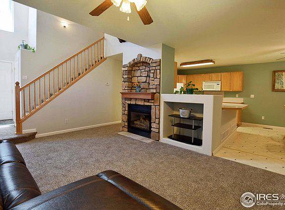 This townhome has it all! Enjoy the open entry with vaulted ceilings and natural light that flow into the loft, which could easily be converted to a 4th bedroom if desired. Features include a stone gas fireplace, open kitchen, brand new carpet and paint, new roof, a "suite" basement set up with a full bath and walk-in closet and the seemingly hard to find townhome 2 car garage! Only 15 min. to downtown Fort Collins and just a few blocks from the new high school! Quick and easy access to I-25. HOA includes landscaping,maintenance,water,trash, plus the non- potable water to keep things looking green!