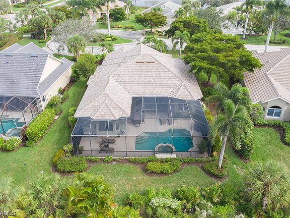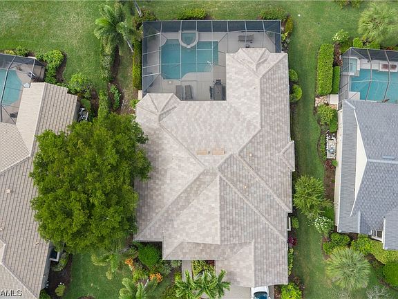 BRAND NEW ROOF IN NOVEMBER 2023 and the A/C was replaced less than a year ago. This beautifully nestled home is situated on a cul-de-sac, has great curb appeal with mature landscaping and is very close to one of the many nature trails within Verandah. This 4 bedroom, 3 bath home has loads of upgrades including twin Murphy beds in the HUGE fourth bedroom, crown molding, tray ceilings, a huge study w/pocket doors, wood like flooring in the bedrooms and a mitered glass window overlooking the pool/hot tub from the eat in kitchen. The kitchen has STAINLESS STEEL APPLIANCES with NATURAL GAS, corian counters and a tankless water heater. The lanai has newer screens and the pool heater was replaced. The PRIMARY SUITE is spacious and the PRIMARY BATHROOM has dual sinks, a soaking tub, separate shower, and a large closet. Built by Rutenberg, attention to detail was not compromised on this house. The Verandah offers 2 championship golf courses, tennis, a resort style community pool, doggy park, pickleball, bocce ball and miles upon miles of walking & biking trails. This home is aggressively priced, taking into consideration that the new home owner may wish to make cosmetic upgrades.