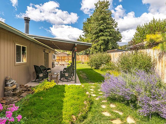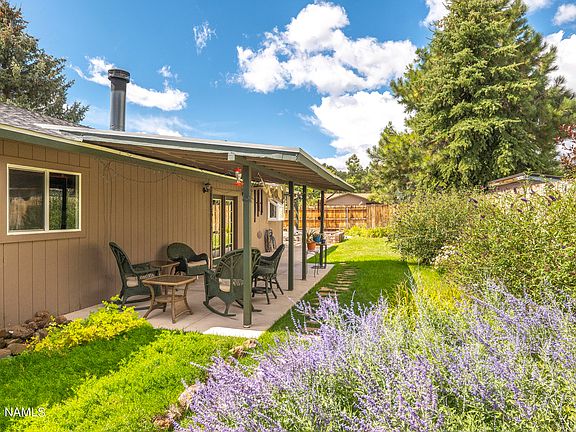 Situated on a spacious corner lot, this property features stunning gardens with water feature, a covered outdoor patio, and a plumbed gas fire pit (with option to extend piping for outdoor BBQ). A pergola with hot tub hookup, a workshop, and RV parking add to the appeal. Plus, you'll love the convenient access to National Forest trails, Flagstaff's Urban Trail system, the Museum of Northern Arizona, and Arizona Snowbowl. **Recent updates include: new roof (April 2024), new garage door opener (Sept 2024), washer/dryer, refrigerator, and microwave all less than 4 years old. Windows (2017), furnace (2018), exterior paint (2020)