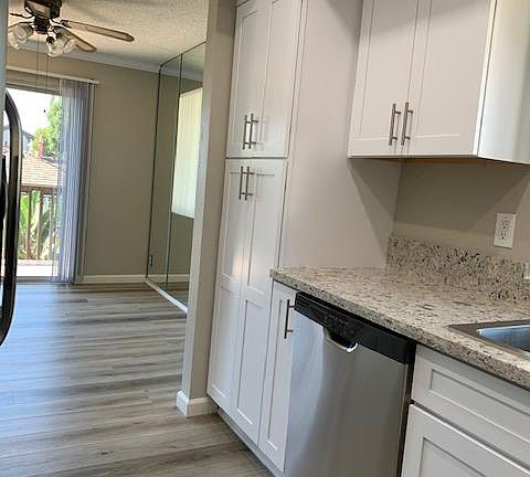 Wonderful large duplex apartment. Newly remodeled. All new kitchen with new cabinets and new stainless-steel appliances with a built-in microwave. Optional double door stainless refrigerator. Room for a table and chairs in kitchen. Spacious living and dining great room with a brick gas log fireplace. Large master suite has double closets and an office alcove retreat. Master bath has double sinks and a private shower, toilet area. New wood flooring through out with new carpet in the bedrooms. Private balcony with a shared patio. Full size washer/dryer hookups. Oversized private 2 1/2 car garage with ample extra storage space. No smoking property. No smoking property; full size washer/dryer hookups; oversized double car garage with storage; brick log gas fireplace; eat-in kitchen with separate dining room