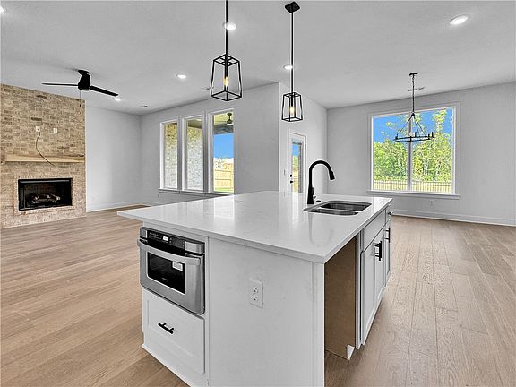 Beautiful Kelsey Plan with 3 bedrooms, 2 bathrooms, and a 2-car garage in Henderson Park, our newest Community located in Fayetteville! This Community is currently under construction and homes will be ready Spring 2024. Our homes will be 4-sided Brick. The Kitchen will have an oversized kitchen island, quartz countertops and 42-inch upper cabinets with top molding with an Upgraded Stainless steel appliance package. The Living room will have a Beautiful Gas Fireplace. LED lighting throughout! 2-inch blinds throughout! Ceiling fans! High efficiency air conditioner system with Programmable WI-FI thermostat! Tankless hot water heater! Covered Patio! Gutters included!. Springdale Schools!