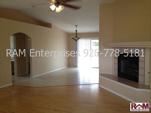Nice Home in a Quiet NeighborhoodQuiet neighborhood in Prescott Valley, Fenced back yard with established landscaping. Wood and tile floors throughout with carpet in the bedrooms. Walk in closet in Master bedroom. Large pantry in kitchen. Gas fireplace in living room.Pet policy is CWO-with an additional security deposit equal to 1/2 months rent due a move in, 1 small dog/1 small cat. Pricing is for 1 yr lease/ a 6 month lease is $50.00 more monthly. All utilities are tenants responsibility. 2 car garage. Gas stove, refrigerator, dishwasher, garbage disposer and laundry hook ups included. F/A gas heat and A/C cooling system. Students - CWO. Built in 1996. No smoking in this unit.Directions from RAM Enterprises: East on W. Gurley St. to Hwy 69 towards Prescott Valley. Left on Robert Rd., right on Yavapai Rd., left on Tani Rd., right on Etheridge Dr. House will be on the right.