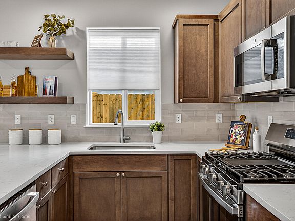 Fall Savings - $10,000 in closing costs or toward the price of this move-in ready home. Smart living meets Central Oregon adventure in the Alpine floorplan! Thoughtfully designed with 1,000 sq. ft. of efficient space, this home delivers comfort, style, and an unbeatable value. Enjoy peaceful evenings with sunset views of the Cascade Range, Smith Rock, and Cinder Butte from your spacious fenced backyard. Inside, durable LVP flooring, included window blinds, and ample storage make daily living easy. The covered front and back patios extend your space for year round enjoyment, while the gear shed and insulated garage offer extra flexibility. With an included1-year builder warranty, you can move in with confidence. Located near Highway 97, local attractions, 10 minutes to the airport, and the future 2 acre community park, this home delivers effortless Northwest living just in time for the holidays!