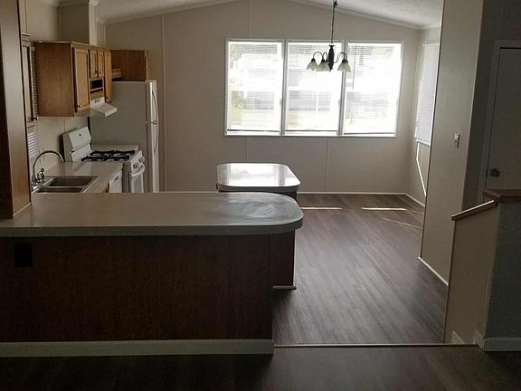 When you first walk into this beautiful home you really greeted by a lovely kitchen area , with an island included. You then step up yes I said step up into the the spacious living area. You have 3 carpeted bedrooms , two full bathrooms. The master bedroom does have a nice full size bathroom. Schedule a Tour today