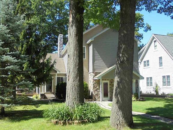 Steps down a delightful Terraced yard to Black River with steel seawall and Boat docking. Delightful location for boaters, beautiful water views, exterior decking, walk out lower level. Spa room, first floor bedroom or den, large kitchen with appliances and oversized dining room. Open floorplan with lots of nooks and crannies. Oversized entry with stairs to upper den with floor to ceiling built in bookcases. All rooms are spacious and everything is neat and clean...ready to move in. Priced to sell quickly.