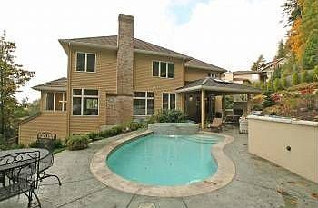 Grand and dramatic NW architecture in this renovated West Hills home.Stunning sunset,coast range views.Meticulous detailing/high end finishes & blt-ins. Exquisite gourmet kit w slab granite,fam rm,lib,game room,4 bdrms,5 frpls,lower level guest suite/office. Covered outdoor patio w firepl and lovely pool w spa.Serene setting in gated neighborhood.