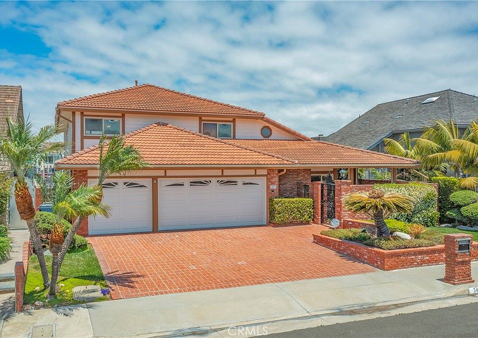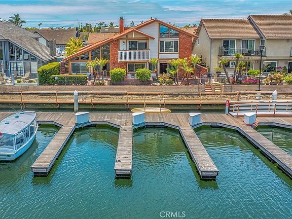This beautiful Trinidad Island WATERFRONT Home has 64 feet of waterfrontage, 180 degree waterview, remodeled in the early 2000s, and lovingly maintained ever since! There is nothing like the Trinidad Island Lifestyle, it features a beach, two playgrounds, very large greenbelts, and waterfront walkway for jogging, pet walks, or evening strolls... simply one of the finest neighborhoods in Coastal Orange County, and located in the award winning Harbour View School District. The home is on the waterfront walkway (similar to walk-way around Balboa Island), and has a deeded boat slip included… Yes, your boat will be right outside your back door! This home is ideal for families who need “space” and want a quiet location within a fantastic neighborhood! The lot has low maintenance landscaping ideally suited for entertaining, and it offers plenty of room for a large family with a 3 car garage, 3 car driveway, and nearly 3,400 square feet of living space. The 4 bedroom, 3.5 bath Open Concept floorplan has been upgraded through-out… all the rooms are spacious! Sought after 1st floor features include: Double door entry, elegant formal living room, formal dining, step-down bar, downstairs bedroom & full bath + separate powder room, walk-in laundry room, and most importantly a kitchen which is open to the breakfast nook & family room. The gourmet island kitchen features garden window, granite counters and professional quality stainless steel Thermador appliances: built-in refrigerator, cooktop, microwave, warming drawer, oven, & dishwasher. The primary bedroom is truly luxurious with full width waterfront views, retreat with fireplace, balcony, large walk-in closet, and spacious primary bath with water closet, dual sinks, vanity area, separate tub & shower. The gated & private front patio includes an inground spa, brick patio, and dog run. The extra (108 foot) deep lot allows the back yard to be more spacious than many other waterfront homes... it has a built-in BBQ, Seat wall, ample areas for patio dining, and wonderful views of the calm waters of Huntington Harbour (with boats, kayaks, & paddle boards passing by). Be sure to check out the finished attic! This home is on the Holiday Boat Parade route, so start making your guest list for your boat parade party now! The boat dock (#143) is ideal for your Duffy, fishing boat, or “Catalina Cruiser”. HOA dues work out to about $337 per month total and includes HOA for neighborhood, boat dock, and security guard patrol.