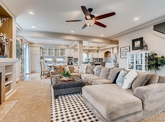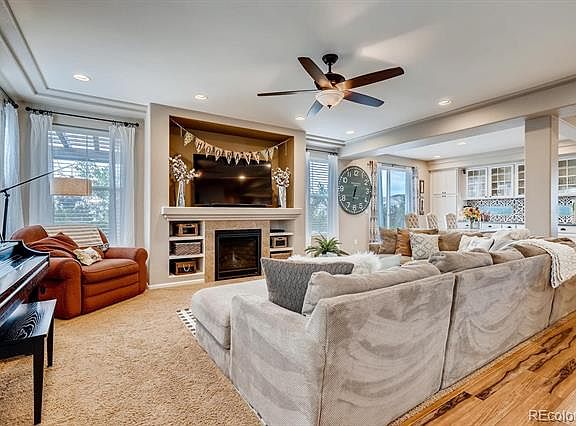 Beautifully upgraded 5 bed 4 bath house! Magnolia inspired Barndominium style upgrades!! Check out the gourmet kitchen w/ quartz counters designed to look like concrete, island w/ beadboard accent & pedestals, concrete tile accents, updated fixtures & sink, extended cabinets & counters, 4 burner gas cooktop, pantry and large eat in area. Opens to spacious family room w/fireplace, built in's, LED can lites, trayed ceiling and ceiling fan. Main floor laundry room w/cabinets. Large Master Suite has mountain views & attached bath featuring dual sinks & a large walk in closet. All upper bedrooms are oversized and have ceiling fans. Fully finished basement has media/rec room, bedroom w/ walk in closet, and large full bathroom w/ dual sinks. Oversized insulated garage -- 2 1/2 car garage and extra 3 feet deep! Professionally landscaped & fenced backyard has a large paver patio w/ pergola, built in gas firepit, water feature and established trees. Short walk to park, school and trails!
