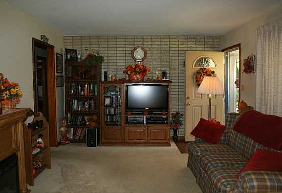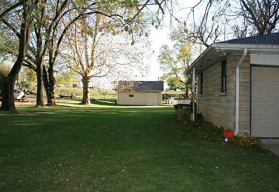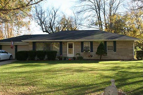 Bedford stone home with country setting. 3BR, 1BA home with attached 2 car garage and detached 2 car garage. New tile floor in kitchen, summer 2014. Hardwood flooring underneath carpet. Mature trees. Well kept home. May be eligible for 100% financing. All appliances included.