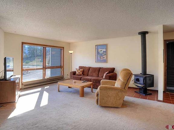 Wonderful, clean, 2 bed, 2 bath 1091 ft condo, with covered parking and garage, between Durango and the ski area that is ready to go to it's new owner. This condo has been primarily a second home and has never been a rental. The real woodstove will keep you cozy on those Colorado winter evenings. You can enjoy your morning coffee or an evening beverage year round on either covered deck. HOA includes water, trash, basic cable, snow clearing, chimney and heat in the garage. So make this affordable condo your primary residence or use it as a rental. This is the least expensive 2 bedroom with a garage available. Don't buy anything in this price range without seeing this one first!