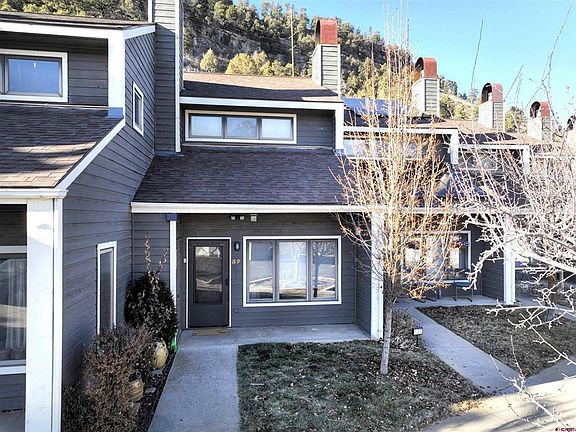 3 bed/2 bath Townhouse with Unrestrictive Short Term Rental ability, a Detached Garage and prime location between Purgatory Ski Resort and the City of Durango in the beautiful Animas Valley. Ease of living for full-time residence, second home, vacation rental investment opportunity or long-term rental make this product a true commodity for our local market. The main level hosts a welcoming living and dining area complete with a wood-burning fireplace and primary bedroom. The primary bedroom has an attached bathroom with updated walk-in shower. Sliding patio doors access the lower-level covered patio and you will also find stackable W/D on the main level. The second floor carries two additional bedrooms with full bath dual vanity sink between them. The west bedroom is attached to the bathroom and also features a balcony. The east bedroom is an open loft style bedroom. The main level is heated with in-floor radiant heat and the upper level has baseboard heating. This townhome offers two dedicated exterior parking spaces in addition to the one-car detached garage and guest parking nearby. A Gazebo and tennis court are located in this complex for use of owners and their guests. Conveniently just a short drive from James Ranch Grill & Market, Purgatory Ski Resort, Durango Hot Springs Resort and Spa, and PJ's Gourmet Market, this lovely property is unique and rare for any STR eligible unit in all of La Plata County. The HOA is $466/month and covers all: water, sewer, trash, insurance, maintenance, landscaping, and snow removal. Call our Born and Raised team so we can show you a great way to invest in your future today!