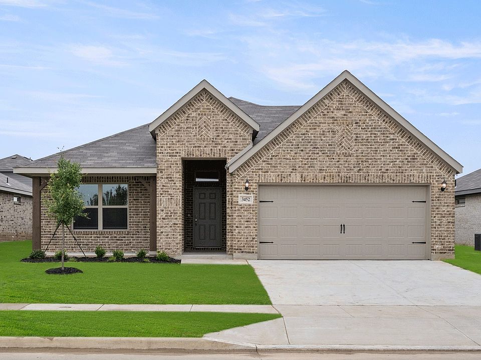The Lincoln plan offers an open concept design with beautiful California-style kitchen, large island, and vaulted ceilings and a Texas-sized walk-in pantry for small appliances and storage. The elegant owner suite offers separate shower, garden tub, dual-sink vanity and large walk-in closet. Spacious, private secondary bedrooms and separate laundry room.