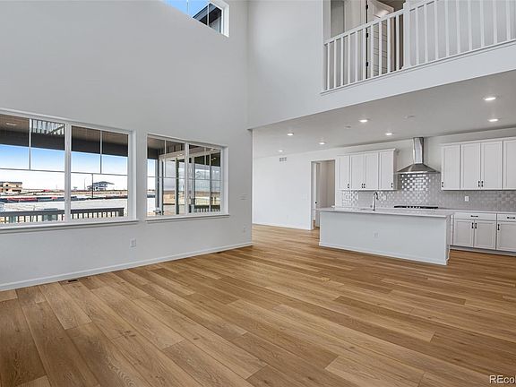 Speak to our New Home Sales Advisors about our Special Financing Incentives on Move-in Ready Homes. Come and see the Tri Pointe Difference in home design, our level of finishes and our quality of construction. This beautiful new home is located in the amenity-rich community of The Aurora Highlands and is bustling with activity. The event lawn is now open, along with public art displays. Plans are underway for a Beach Club with community pool, miles of trails, numerous neighborhood parks - including playgrounds and athletic fields - and the expansive Hogan Park at Highlands Creek. The Aurora Highlands also hosts numerous community events throughout the year for its residents such as an Independence Day Festival and a summer Artisan market. Stepping through the front door of the home, you’re embraced by an atmosphere of warmth and sophistication. This home includes details such as luxury vinyl wide plank with a ‘wood look’ throughout the main level, a great room with vaulted ceilings and a sleek black gas fireplace, and stylish vertical railing. The spacious kitchen offers sleek white cabinets with black finishes, white quartz countertops, a stainless-steel appliance package – including a gas range, oven, dishwasher, and microwave – and an island with additional cabinet storage. The primary suite features a double vanity with white quartz countertops, a large tiled walk-in shower, and a spacious walk-in closet. Take advantage of the finished basement that offers a flex room, bedroom, and bathroom or enjoy some time outdoors by relaxing on your covered back patio.