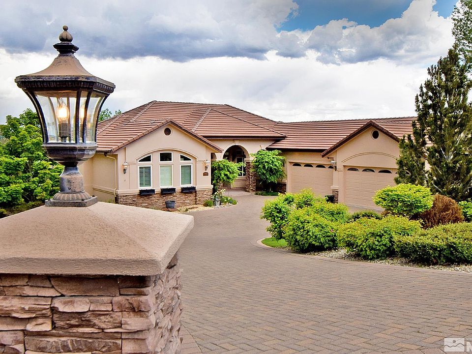 Views. Views! VIEWS!! An original owner, 4746 square foot, custom built home in the gated Arrowcreek community of Nambe Estates. The views of downtown and the mountains to the East are incredible night and day, and all year long. Adjacent to open space, this home is very private with mature landscaping. The deck off the family room features a gas plumbed BBQ and outdoor seating to take advantage of the view! There is also another private patio and hot tub downstairs overlooking the private yard., Upgrades in this home include Thermador appliances, a Sub Zero fridge/freezer, wet bar and a wine cellar downstairs in the finished, walk-out basement.