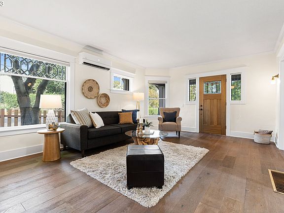 Welcome to this quintessential gem where timeless character seamlessly merges with modern updates. This remarkable corner lot home, located steps away from the vibrant Multnomah Village, boasts a fully remodeled kitchen & bathrooms, a new roof in the summer of 2023, newer light fixtures, and an updated dual HVAC system. Captivating character details include leaded & stained glass windows, elegant millwork, and hardwood floors. A large covered front porch invites you to relax and savor the surroundings. Inside, an open living area greets you with its decorative brick fireplace, wide plank engineered hardwood floors, crown molding, and a dining space enhanced by wainscoting. French doors lead to a versatile room, ideal for an office, media room, or guest bedroom.The beautifully remodeled kitchen showcases recessed lighting, freshly painted cabinets, quartz counters, and floor-to-ceiling subway tile. Stainless steel appliances, including a Jenn Air gas range with a downdraft, complete this culinary delight. Convenient garage access from the kitchen adds practicality to your daily routine. Original hardwood flooring guides you to the upper level, where three bedrooms, all boasting walk-in closets, await. One of the bedrooms offers access to a spacious covered deck, providing the flexibility to serve as a primary bedroom for private enjoyment or a den for everyone to revel in the outdoor space. The gleaming hallway bathroom is encased in tile, featuring two vanities, a soaking tub, a glass surround walk-in shower, and quartz tiles with Schluter heated radiant flooring for a spa-like experience. The lower level includes a family room for additional living space and a second remodeled bathroom adorned with extensive tile finishes, heated tile floors, and a walk-in shower. This level is completed with a storage room and a laundry area. A side yard provides ample space for Fido to play, while a main-level deck offers space for barbecuing and stairs to the upper level deck. [Home Energy Score = 3. HES Report at https://rpt.greenbuildingregistry.com/hes/OR10221521]