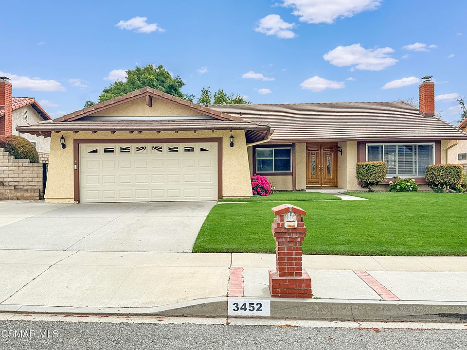 Stunning single story 4 bedroom on the golf course in the desirable Texas Tract! For those who have been waiting for a golf course home, this is it! An extra wide driveway possibly large enough for an RV is perfect for those who need extra parking. The home has a cement tile roof which is far superior in longevity to a standard composition shingle. Beautiful double doors lead into a raised entry. The living room has vaulted ceilings and real wood burning fireplace. For those who love to entertain, the home features a formal dining room. The family room is truly one of the best features of the home and has a high ceiling, a large glass slider that opens to a massive backyard overlooking the golf course. The room also is connected to an informal breakfast room and the kitchen. This floorpan is really popular because of the large kitchen that looks out onto the backyard. Built with endless cabinets for storage, the kitchen is a dream to cook in or entertain. Favored by many for its endless possibilities, many owners of this model have removed walls and opened the spaces into one great room. The master bedroom features an en-suite bathroom including dual mirrored closets. The master bedroom has vaulted ceilings as well as a view out onto the golf course. A convenient slider gives you direct access to the patio and the backyard. The home is spacious with almost 1,900 square feet and has an indoor laundry room leading to the garage. The hallway bathroom has tub and shower! Say goodbye to expensive vacations! You may never want to leave this backyard. Overlooking the Simi Hills golf course and and beautiful pond it is the perfect place to relax and re-charge. The home had an in ground spa which has since been filled in. The possibilities for building your dream backyard are endless! Come see why the Texas Tract is so sought after by buyers.